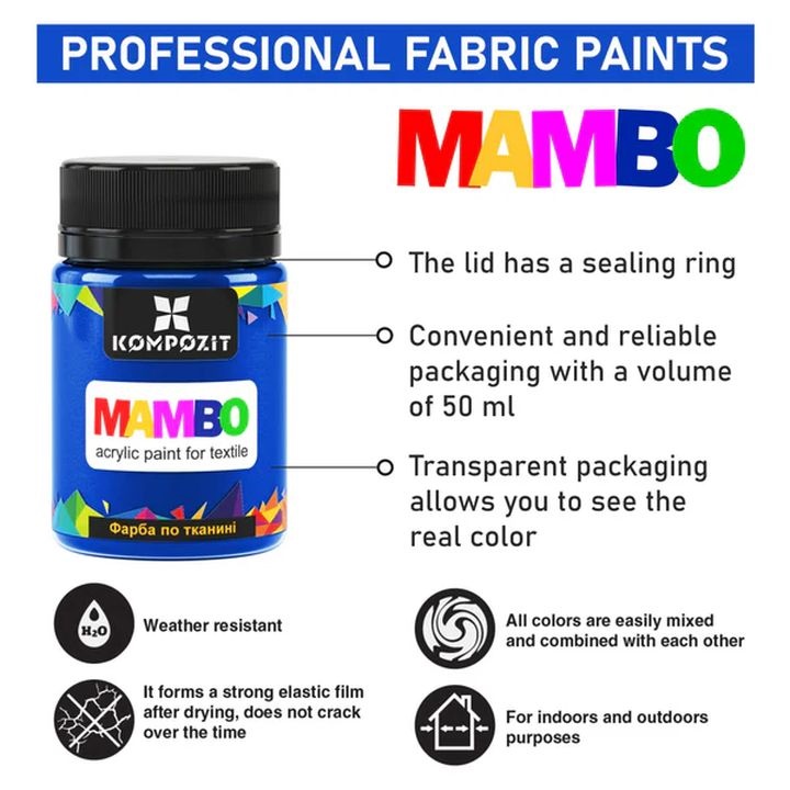 Úvod » Hračky pre chlapcov » Akrylová farba na textil a kožu MAMBO 50 ml | rôzne odtiene