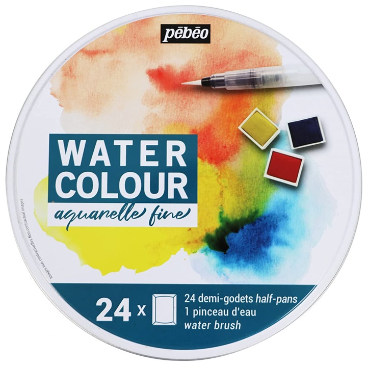 Sada akvarelových farieb Pebeo v plechovej krabičke vás očarí svojím praktickým dizajnom vhodným na cestovanie a rôzne umelecké výlety v prírode. Súčasťou 12 kusového balenia je skladací vreckový štetec pre akvarelové farby, zatiaľ čo súčasťou 24 kusového balenia je štetec AQUA-FLO, ktorý sa dá naplniť vodou. Hrajte sa s intenzitou farieb pomocou množstva použitej vody. Čím viac vody do pigmentov pridáte, tým pastelovejšia bude farba. Naopak, čím menej pridáte, tým viac bude farba pigmentovaná. Keďže pri akvarelových farbách sa pracuje s vodou, zabudnite na príliš tenké hárky papiera, mohli by sa zdeformovať. Ideálna váha papiera pre maľovanie akvarelom je okolo 300g. Akvarelové farby sú vhodné pre študentov a začínajúcich umelcov.