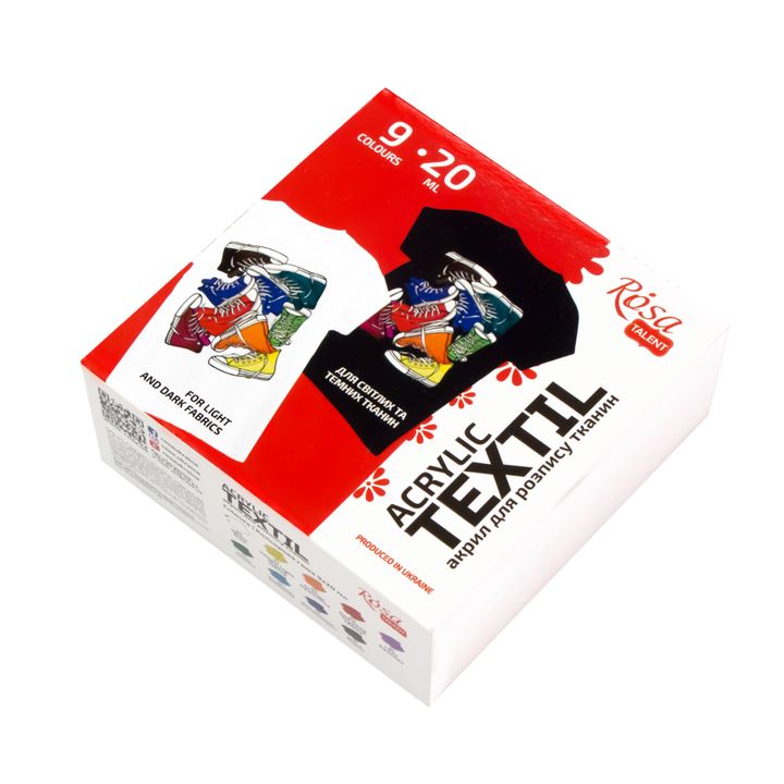 Vytvorte jedinečné ručne maľované oblečenie a doplnky so sadou akrylových farieb na textil STYLE ROSA TALENT. Hodia sa na maľovanie svetlých aj tmavých látok vďaka vynikajúcej krycej schopnosti. Textilné farby sa ľahko rozotierajú, nestekajú a po zaschnutí zostávajú pružné, takže neztvrdnú látku a umožnia jej prirodzené pohyby. Sú vhodné na prírodné aj syntetické textílie, kožu či semiš. Vysoká koncentrácia pigmentov zaručuje žiarivé odtiene, ktoré je možné ľubovoľne miešať a vytvárať nové farby. Maľba je odolná voči ručnému aj jemnému praniu v práčke, ak je správne fixovaná žehlením alebo zapekaním v rúre pri 120 °C. Farby je možné použiť aj so šablónami. Balenie obsahuje 9 odtieňov po 20 ml, ktoré sú ideálne pre začínajúcich aj profesionálnych umelcov.