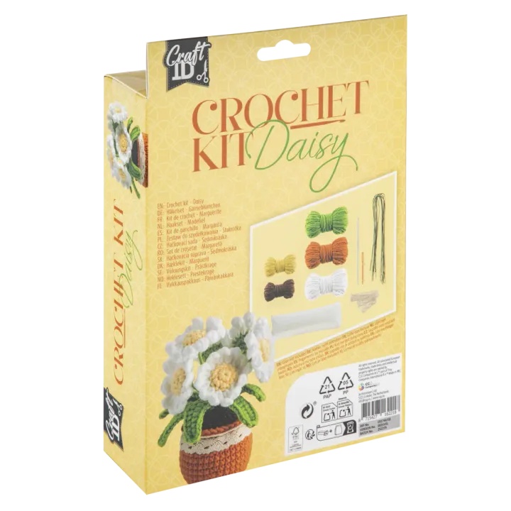 DIY Háčkovaná súprava kvetináča sedmokráska