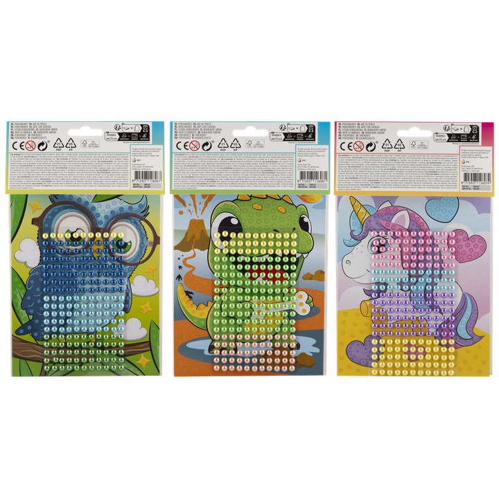 súprava na mozaiku z korálok (24 × 20 cm) umožňuje deťom vytvárať farebné obrázky umiestňovaním alebo nalepovaním malých korálok na vopred pripravenú šablónu, čím vznikajú živé textúrované umelecké diela. Táto