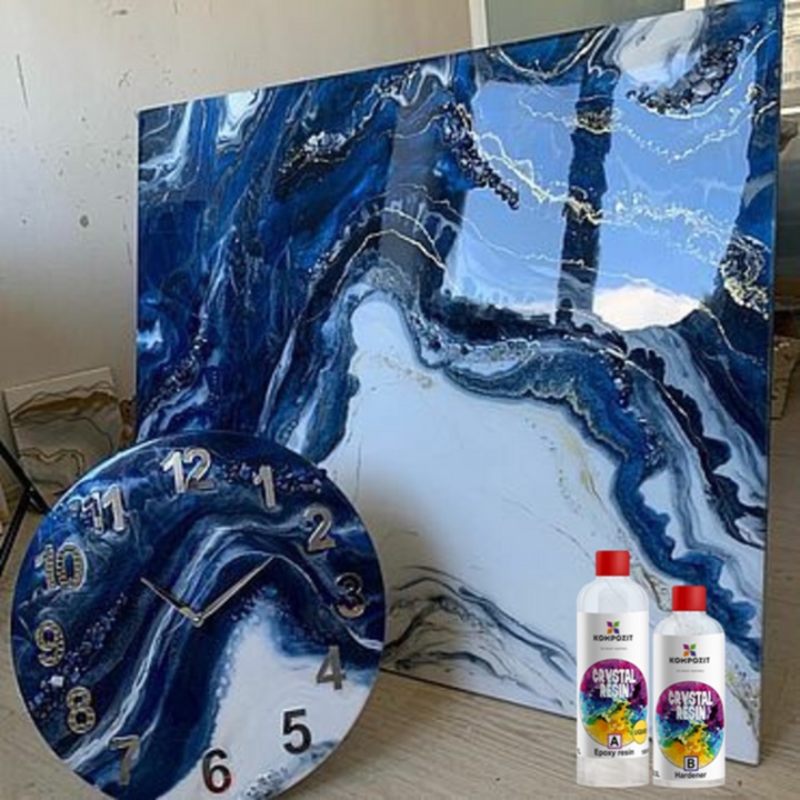 Tekutá epoxidová živica značky Kompozit predstavuje inovatívne riešenie pre umelcov, remeselníkov a všetkých, ktorí sa venujú tvorbe dekoratívnych a funkčných predmetov. Táto dvojzložková živica sa skladá z epoxidového komponentu A a hardenera B, ktoré po zmiešaní vytvoria pevnú, priehľadnú a na dotyk hladkú vrstvu, pripomínajúcu sklo. Je ideálna pre použitie v technike Fluid Art, pri výrobe šperkov, ako aj na zalievanie dokončovacích vrstiev na obrazy či výrobky do hrúbky jedného centimetra.