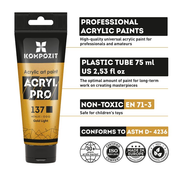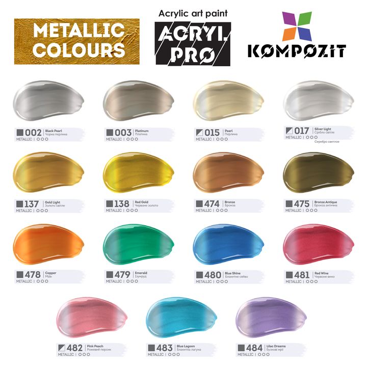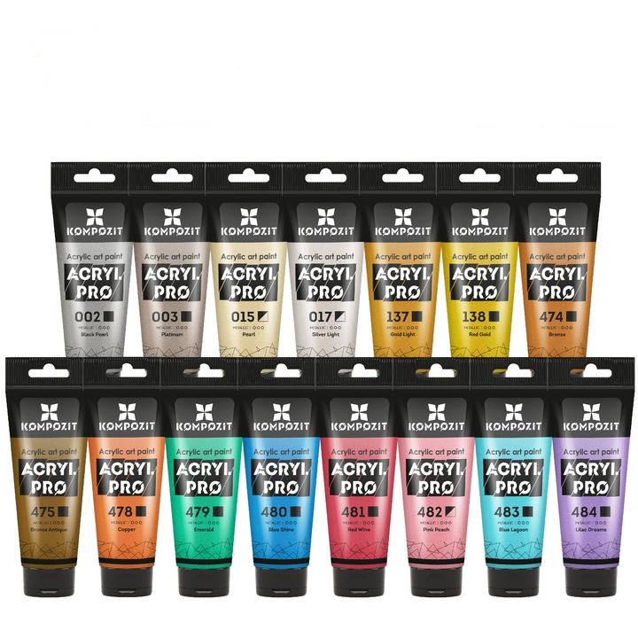 Objavte jedinečnú rozmanitosť a špičkovú kvalitu so sadou metalických akrylových farieb ACRYL PRO od Kompozit. Táto kolekcia je ideálna pre všetkých kreatívcov – od amatérov až po profesionálov.
