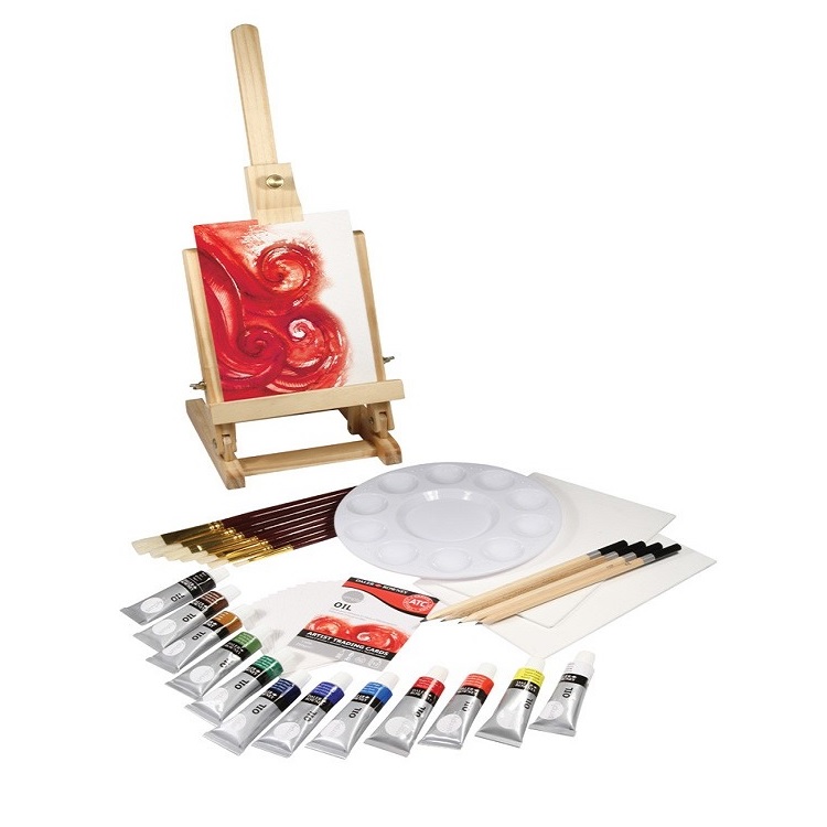 Sada Simply Oil Creative Easel Set od poprednej spoločnosti Daler–Rowney ponúka začiatočníkom, ale aj pokročilým, umeleckú olejovú sadu pre množstvo zábavy a kreatívnosti. Sada obsahuje všetko čo potrebujete na vytvorenie zaujímavého umeleckého diela. Vhodné pre maľovanie olejovými farbami. Je ideálna pre skupinové práce v škole, teambuilding, ale aj na domáce použitie. Výborný tip na darček pre každého umelca!